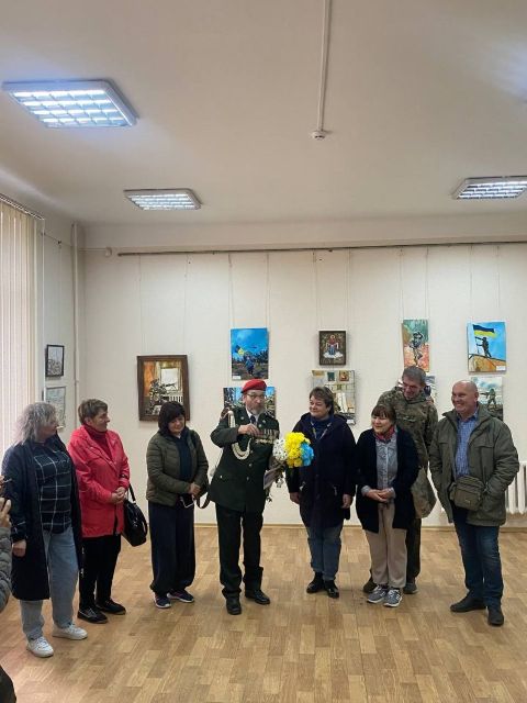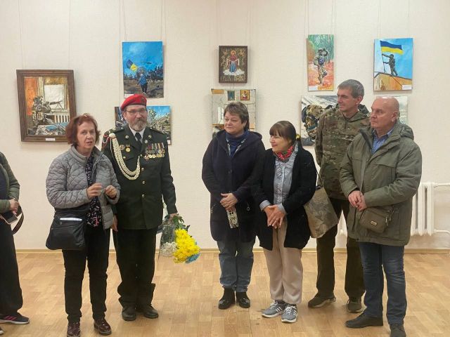 На відкритті зібралися побратими художника, його друзі, знайомі, рідні, однокурсники, представники спільноти художників.