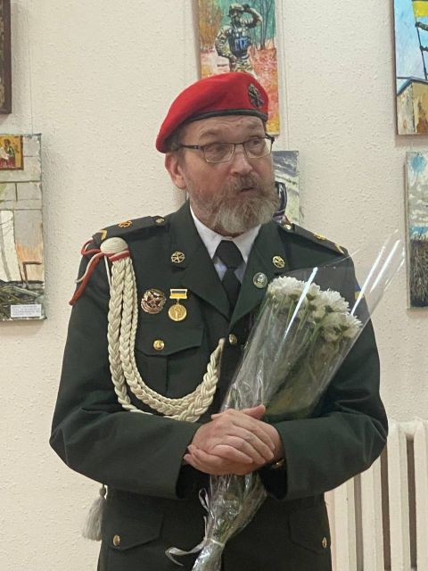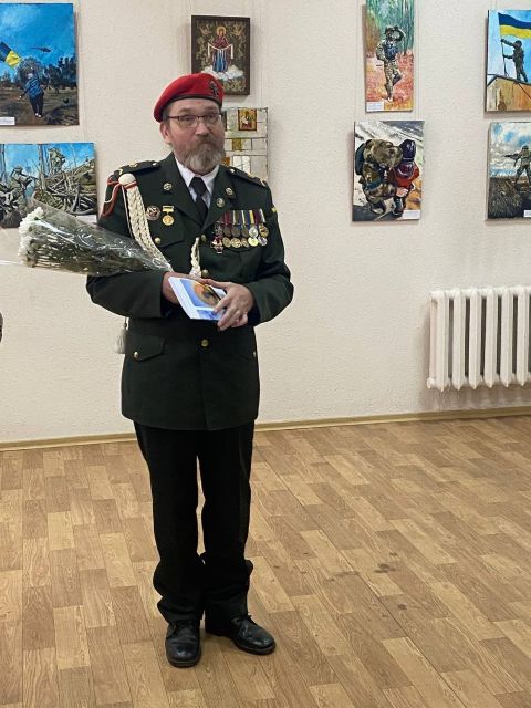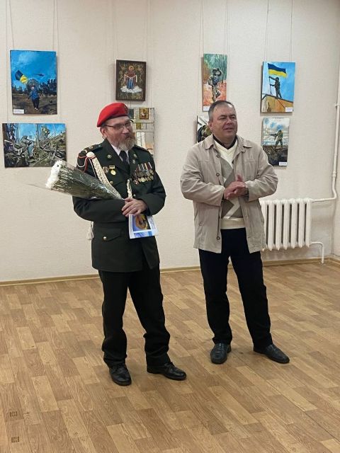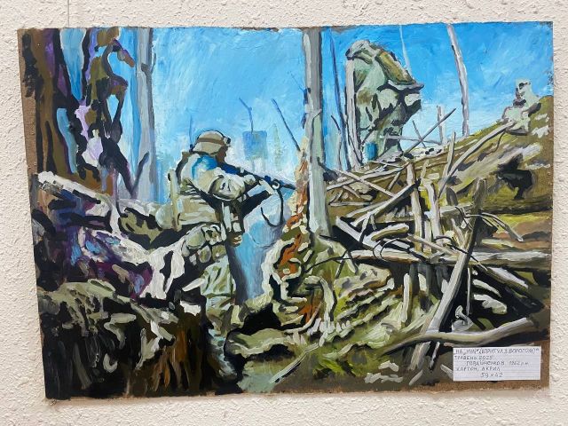 - Мені не довелося бути на Оріхівському напрямку, - розповів Володимир під час відкриття своєї персональної виставки. - Я був на Харківському напрямку, ми захищали Харків. Мої побратими були і на Донецькому — стояли під Авдіївкою, біля Бахмута. Але своїх побратимів почав малювати ще в 2015 році, коли був призваний у ЗСУ по мобілізації, коли на Донбасі проводили АТО.
