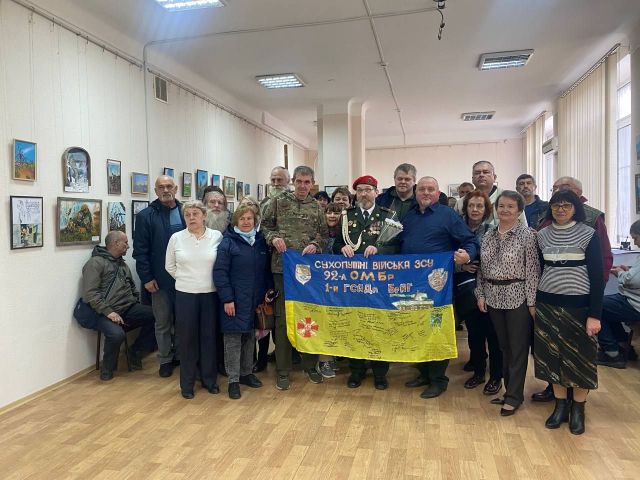 Виставка робіт військового художника та учасника бойових дій на сході України Володимира Гордійченка присвячена побратимам, з якими він разом воював на Донецькому та Харківському напрямках, деякі і зараз перебувають на фронті, а також своїй малій Батьківщині – Оріхівщині.