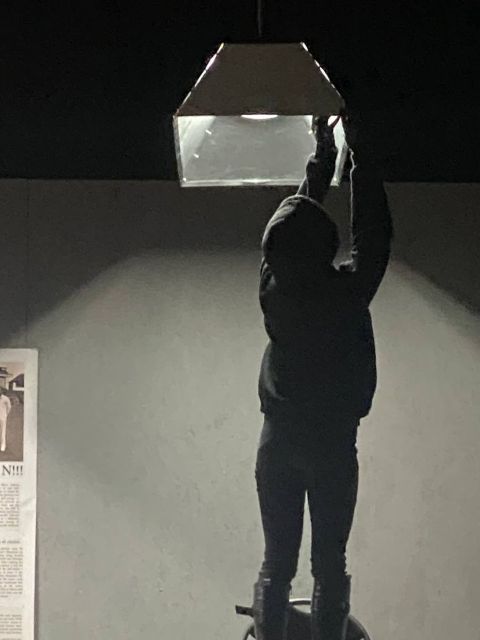 Ліфт у виставі постає як символ: технічна деталь ліфта, який з'являється на сцені, стає не просто елементом декорації, а повноцінним учасником дійства.