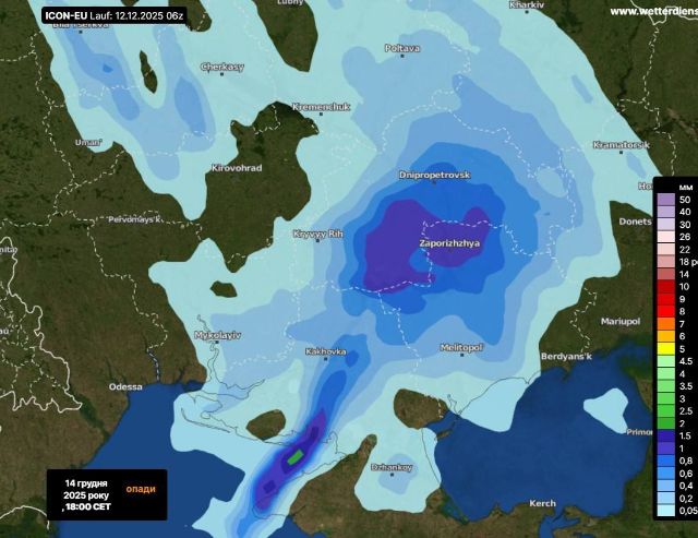 «13-14 грудня погодні умови будуть визначатися активними атмосферними фронтами. 13 грудня пройдуть невеликі дощі та мокрий сніг, вдень 14 грудня очікується випадіння та налипання мокрого снігу, на дорогах ожеледиця