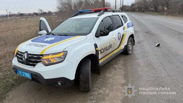 - У Таврійському FPV-дрон ударив поряд зі службовим авто поліцейського - 41-річний офіцер громади зазнав поранень.