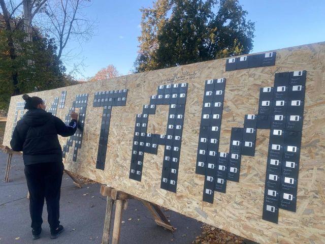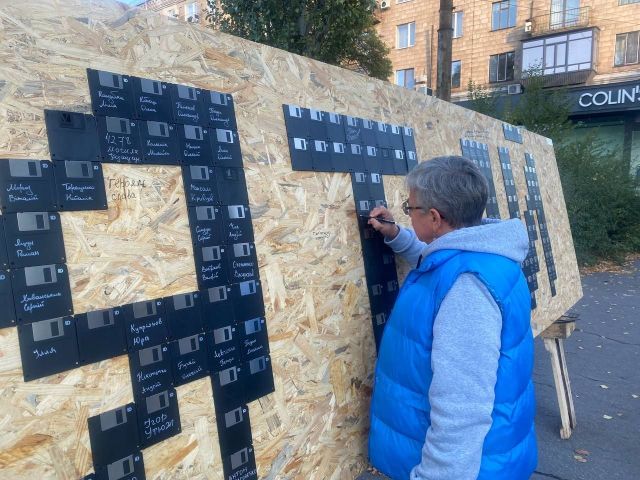 Ми поклали маркери, тому кожен може написати послання для цивільних чи військових, яких забрала війна, або написати на дискеті ім'я людини, яку хочеться запам'ятати назавжди! Інсталяція тимчасова, тому встигніть долучитись! Дякую всім, хто був поруч!», - написав на власній фейсбук-сторінці ініціатор її створення, засновник БФ “Покоління майбутнього” Максим Кравчук.