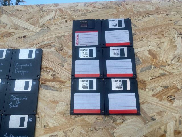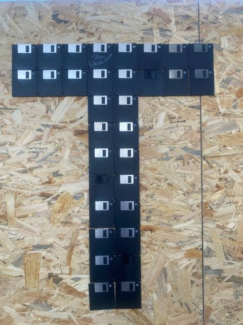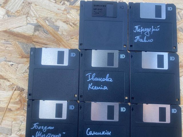 Старі дискети символізують носії людської пам’яті, яку вже неможливо "зчитати". Кожна з них — як фрагмент життя, що залишився у минулому. Війна триває, тому там є ще багато незаповнених дискет.