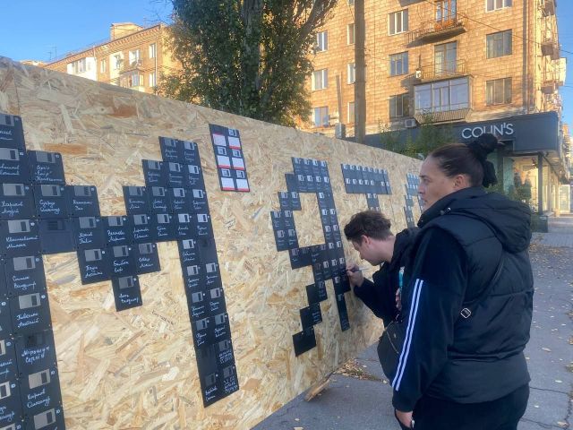 Вона складається зі старих комп'ютерних дискет, прикріплених до OSB-листа. На них написані імена військових та цивільних запоріжців, які загинули під час війни.