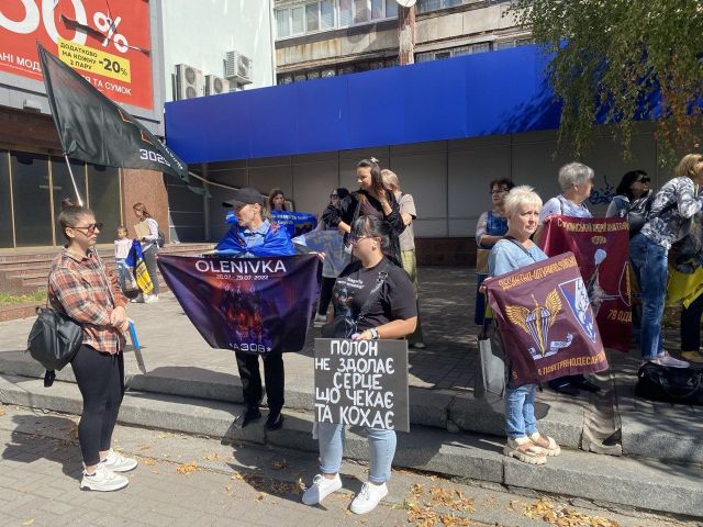 Мами, батьки, сестри та побратими військових, які вже тривалий час знаходяться у полоні, приходять на акції з прапорами, банерами та плакатами.