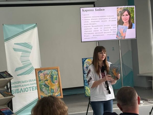 Про авторів та їхні збірки розповідала керівниця обласної письменницької організації, кандидат філологічних наук Ольга Стадніченко. Пані Ольга наголосила на важливості художнього слова запорізьких майстрів слова в цей нелегкий час випробувань, через які проходить Україна.