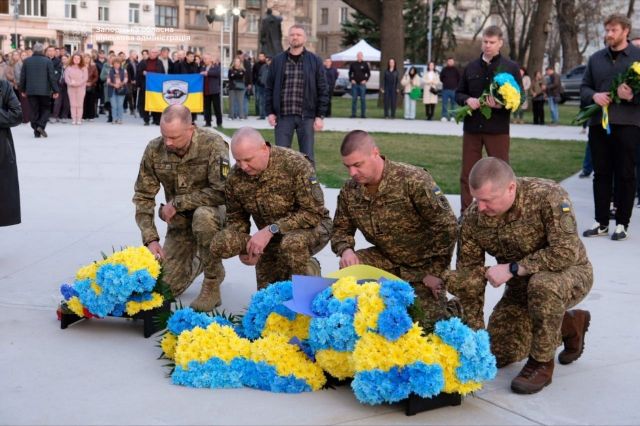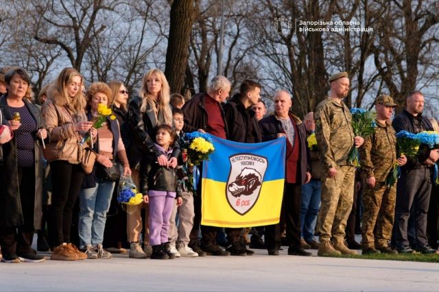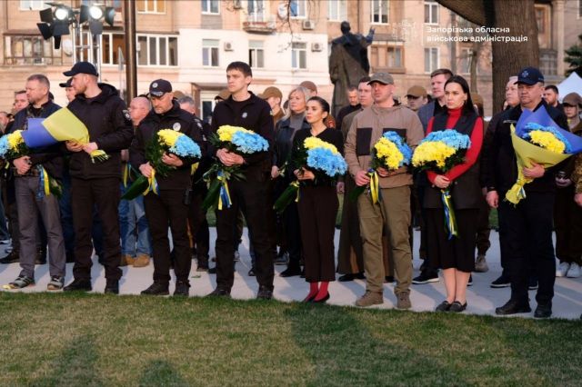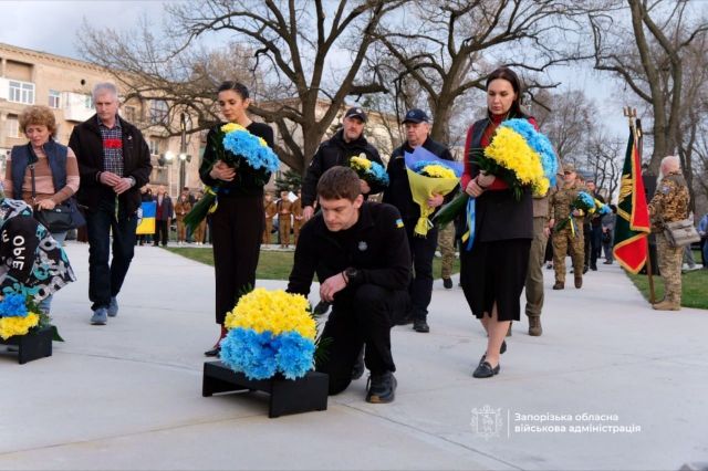 Голова Запорізької ОДА Іван Федоров, секретар Запорізької міськради Регіна Харченко, представники громад, поліцейські та містяни поклали до меморіалу квіти на знак вічної памʼяті про хоробрих бійців батальйону.
