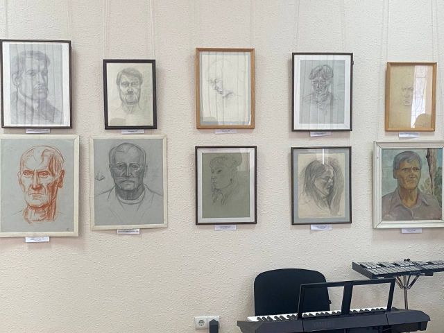 Найбільше любить малювати портрети — і це дуже видно на виставці, де дуже багато як жіночих, так і чоловічих, також є і автопортрети. Малює зазвичай з натури — пропонує намалювати і люди погоджуються.