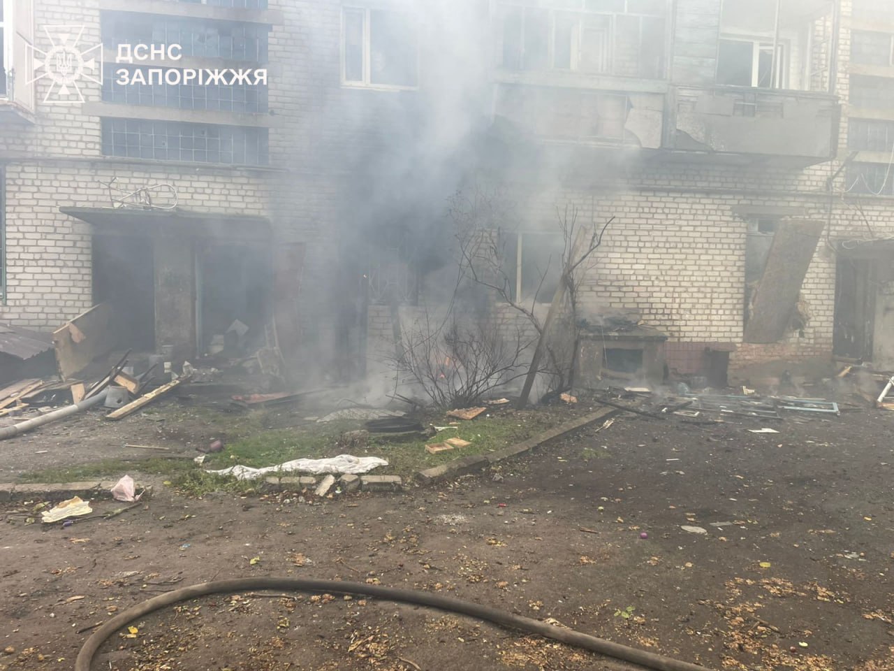 З артилерії та безпілотників у п’ятницю загарбники били по Гуляйполю. В результаті ударів сталася пожежа у багатоповерхівці. Вогонь охопив 200 кв.м.