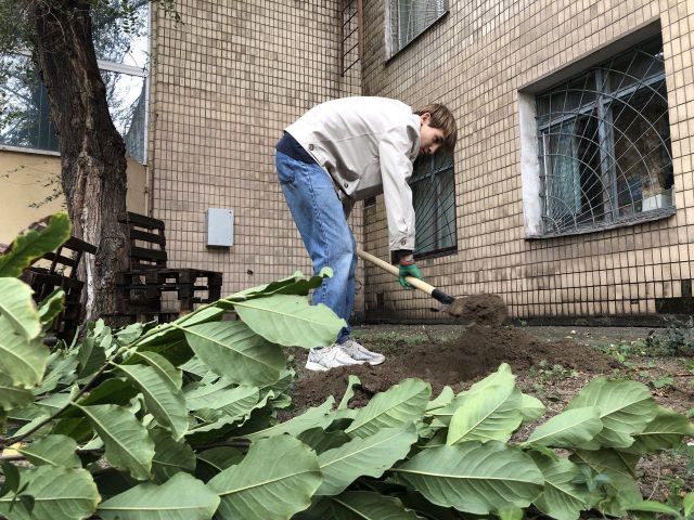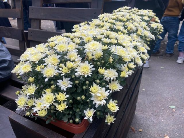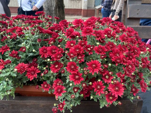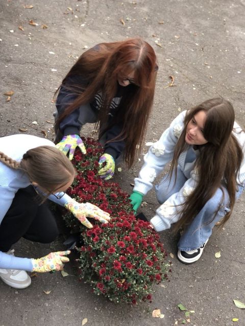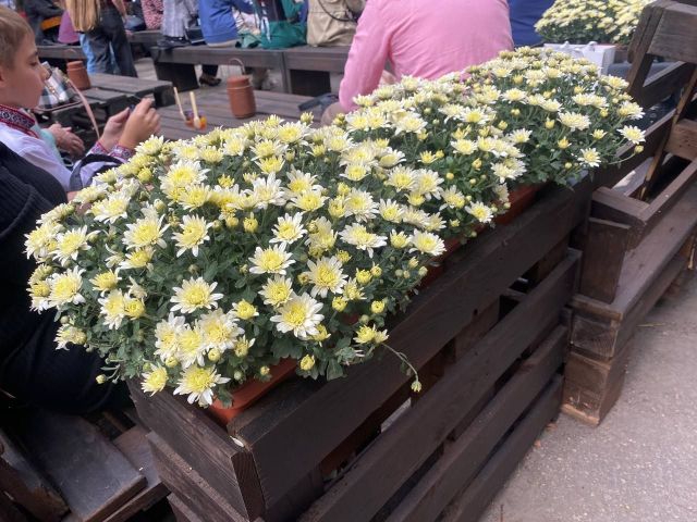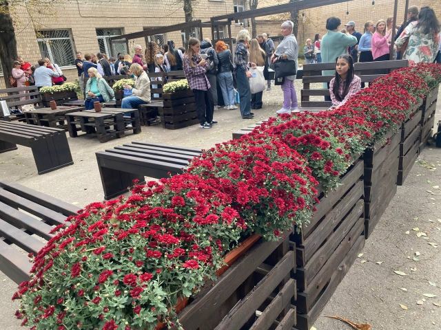Дворик до відкриття прикрасили різнобарвними хризантемами, висадили тут також і магнолії.