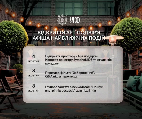 За словами директорки департаменту Альони Власової, найближчими днями у дворику встановлять найбільший open-air екран у місті, на цьому тижні вже запланований кінопоказ..