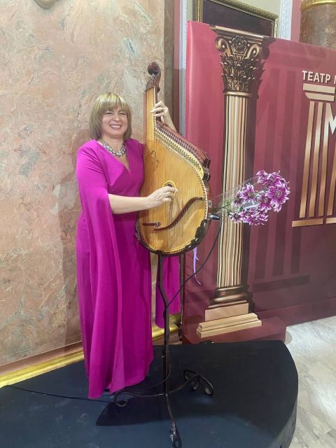 Хочеться також відмітити неперевершену гру на бандурі перед виставою Ольги Беженарь, заслуженої артистки України, яка дуже полюбилася всім нашим глядачам, якій завжди залюбки аплодують, а шанувальники її таланту дарують квіти та чекають на її сольний концерт!