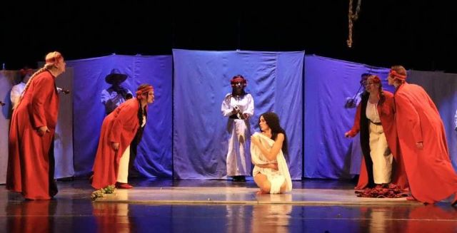 - Так, хор пояснює задум, що діється у виставі. Тут такі пристрасті, на рівні давньогрецьких трагедій! Тому й виник цей приблизний амфітеатр на сцені, напівколом. І виникла ідея давньогрецького хору, який пояснює дії, іноді над чимось насміхається, чомусь співчуває.