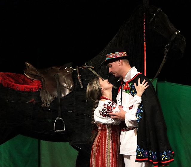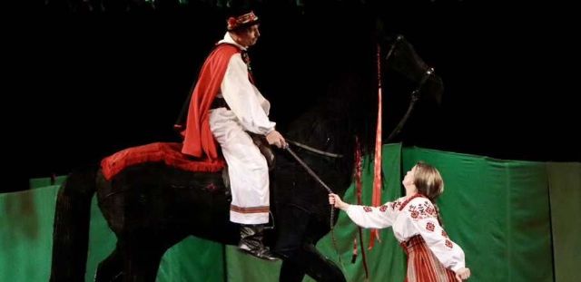 - Головною дійовою особою вистави, як на мене, можна вважати і вороного коня, який часто з’являвся на сцені. На ньому гарцював Гриць, виїжджала скрипалька Ксенія Кізюн і навіть перед глядачами на коні ефектно поставали ви... Глядачі аплодували цьому витвору рук театральних фахівців!