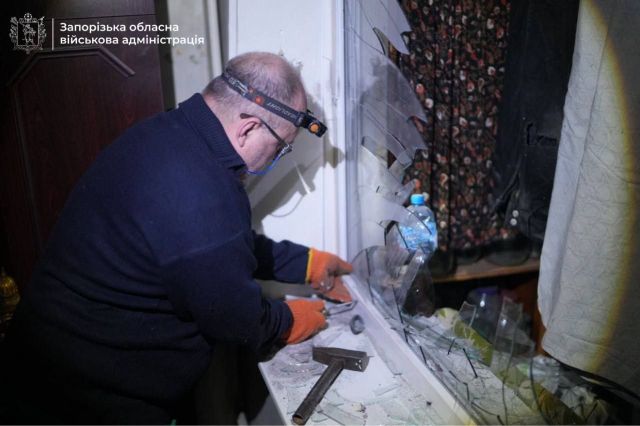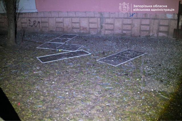 Внаслідок нічного удару по Запоріжжю пошкоджено 3 багатоповерхівки та 3 приватні будинки у Дніпровському районі. Попередньо, у 30-ти квартирах пошкоджено вікна.