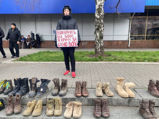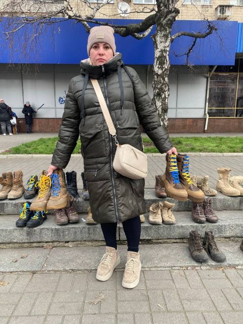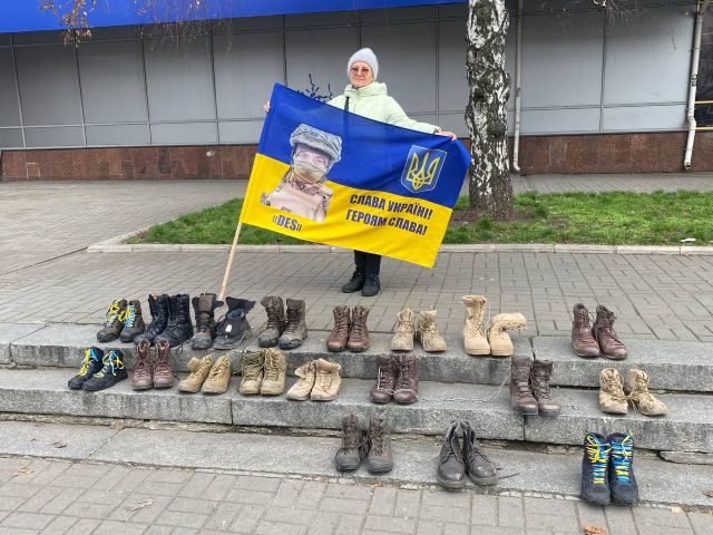“У День Збройних Сил України ми виклали берці, щоб нагадати суспільству і нашій владі за військовополонених і безвісти зниклих військових, - розповіла Стелла Орел, яка організовує щртижневі акції з травня минулого року, незважаючи на проблеми зі здоров’ям. - Нагадати, зокрема, за військовослужбовців Маріупольського гарнізону, яким був обіцяний “почесний полон” на кілька місяців, а вони знаходяться в російських катівнях вже четвертий рік.