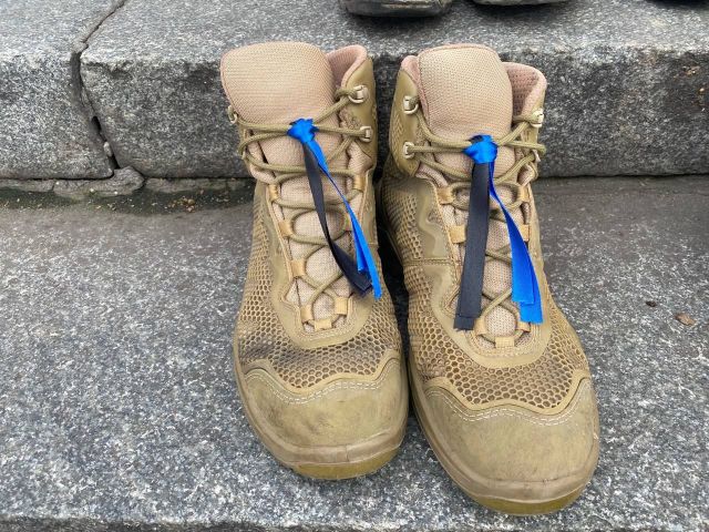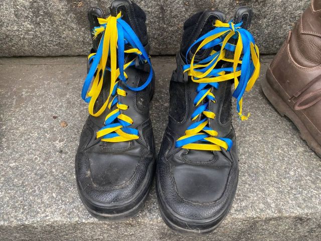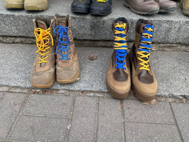Берці принесли учасники акції, також взуття організаторці, військовій волонтерці Стеллі Орел передали військовослужбовці, коли дізналися про проведення такої акції.