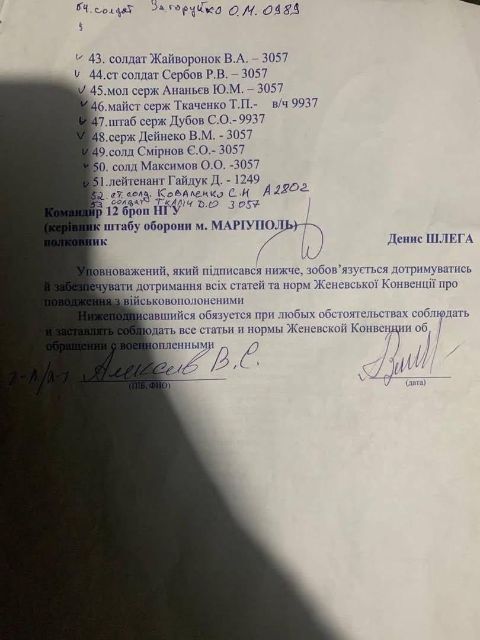 Алєксєєв обіцяв дотримання росіянами Женевської конвенції про поводження з військовополоненими і гарантував нормальні умови утримання для наших полонених. І саме його підпис стояв під відповідним документом, підписаним тоді в Маріуполі.