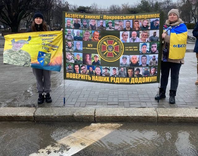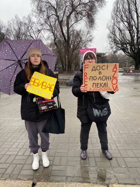 Родини захисників країни вийшли у центр міста, щоб вчергове нагадати владі, суспільству і всьому світу за військових Маріупольского гарнізону, які вийшли в «почесний полон» за наказом вищого командування, за усіх військових та цивільних полонених, та за безвісти зниклих.
