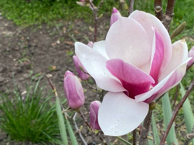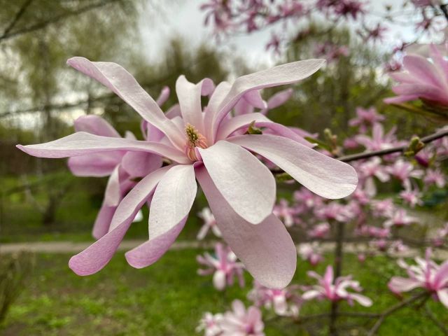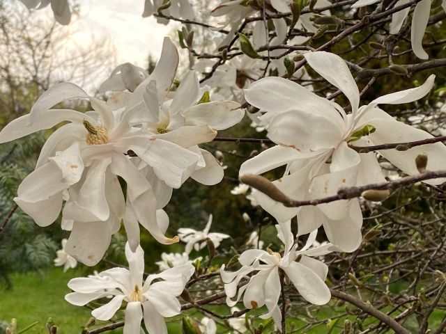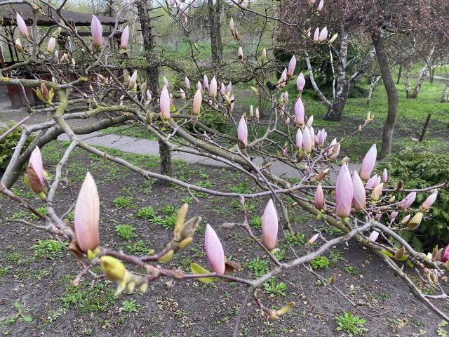 Квітнуть магнолії, їх у парку кілька сортів (одні вже відцвітають, інші лише випустили бутони. - Авт.), нарциси, у нас з’явилися нові сорти — Арктік Белз і Голден Белз, гіацинти якщо в минулому році були одного кольору — темнобузкового, то зараз можна побачити також лимонного, рожевого, лососевого.
