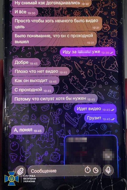 Після завершення розвідвилазки фігурант месенджером звітував про свою роботу кураторові з рф, додавши до повідомлення файли відеоспостереження. Потім він чекав від російського спецслужбіста подальших вказівок щодо способів ліквідації українського інженера.