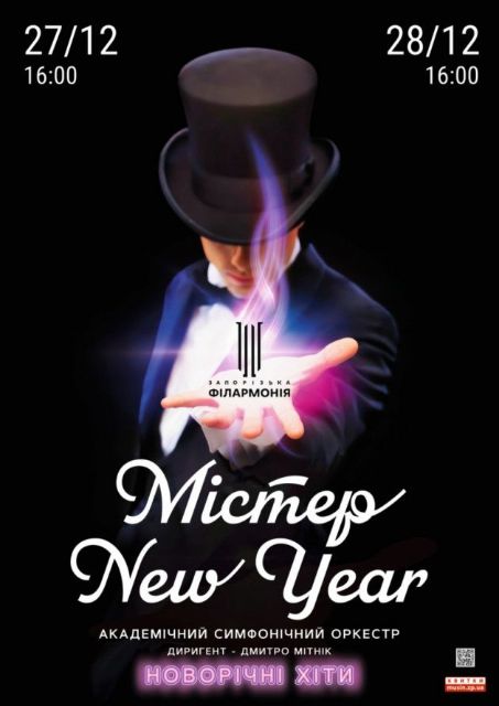 27 і 28 грудня о 16.00 - прем'єра програми "Містер New Year" академічного симфонічного оркестру під орудою лауреата міжнародних конкурсів митра Мітніка.