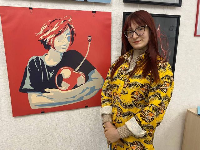 Паралельно навчаюся графічному дизайну в фаховому електротехнічному коледжі НУ “Запорізька політехніка”, я другокурсниця”, - ділиться дівчина. - На виставці представлені мої плакати, колажі, живопис та графіка, а поруч із ними невеликі замальовки, які особливо цінні для мене, бо вони зберігають у собі першу емоцію, ще не відредаговану і не виправлену».