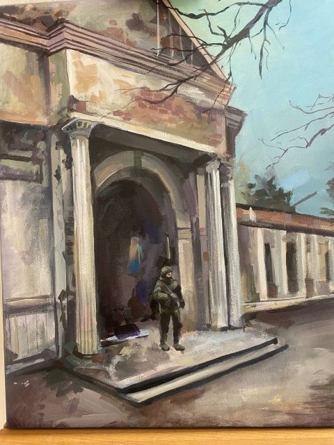 “Ця картина була створена на замовлення, я змальовувала з фото, яке мені надала людина, яка хотіла зробити подарунок військовому. Замовник, м’яко кажучи, виявився недоброчесним і картина в мене залишилася.