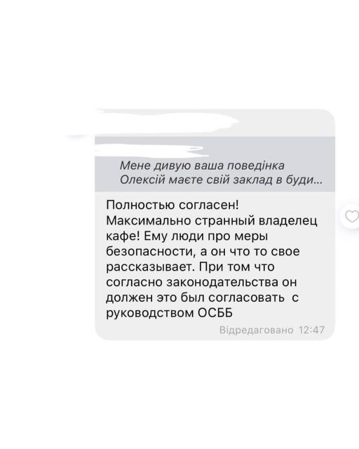 Журналістам вдалося поспілкуватися з власником кафе. Як виявилося, мешканці будинку вже зробили крок назад і відмовилися від своїх вимог