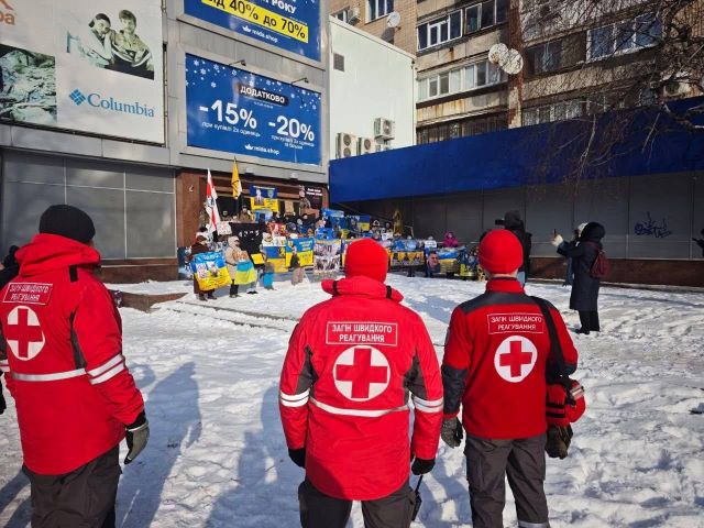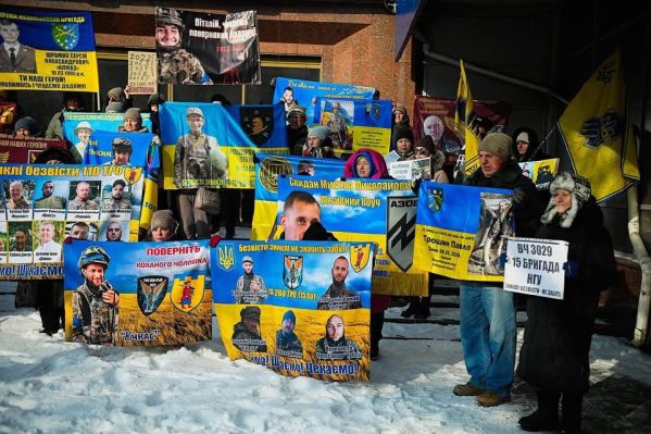 Рідні військовополонених та зниклих безвісти в очікуванні відбою годину знаходяться у місці проведення акції, але вони не мають  можливості проводити її у звичному форматі - вишикуватися  з плакатами, банерами з портретами  своїх близьких та прапорами на проспекті і цим самим нагадувати суспільству про свій пекучий біль.