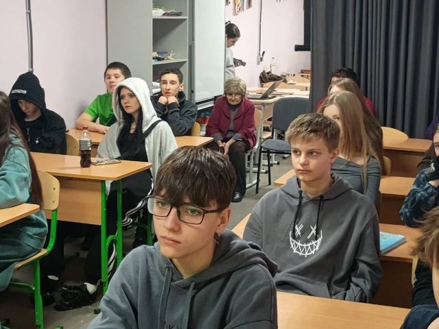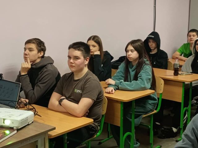 Слухаючи другу лекцію-презентацію, школярі захоплено роздивлялися символіку Національної гвардії України, корпусу «Азов» та бригади НГУ «Кара-Даг». А потім залюбки сфотографувалися з прапором 15-ої бригади.