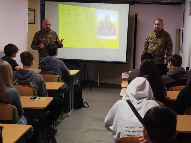 Витоки Національної гвардії України, яка зараз у складі Сил Оборони нашої держави нищить московитських окупантів, сягають ще козацьких часів. Такого висновку дійшли юні учасники зустрічі, коли прослухали дві коротких лекції: про феномен Українського козацтва та про Нацгвардію й, зокрема, про корпус НГУ «Азов» та бригаду оперативного призначення «Кара-Даг», яка увійшла до нього.