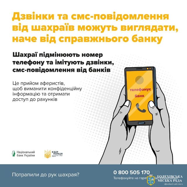 Поліцейські наголошують: справжні працівники банків не телефонують із вимогою терміново вирішити фінансові питання. Якщо отримали подібний дзвінок - припиніть спілкування та самостійно зверніться до банківської установи", - говориться у повідомленні..