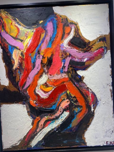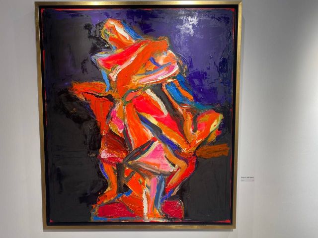 Три однойменних полотна «Янгол» (160х120 см) виступають на дальній стіні виставкового залу, немов іконостас, відразу привертаючи увагу відвідувачів променистими, багатоколірними шатами із бентежними складками, поривчастими рухами, що виражають стан сильного емоційного напруження.