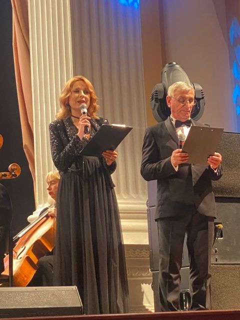 Як завжди, цікаві факти про композиторів та їхні твори розповили незмінні ведучі симфонічних концертів — Світлана Холод і Микола Петюк. До слова, Микола Олексійович вперше виходив на сцену у статусі заслуженого працівника культури України — це почесне звання директор-розпорядник академічного симфонічного оркестру отримав напередодні свого професійного свята.