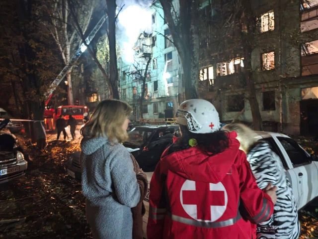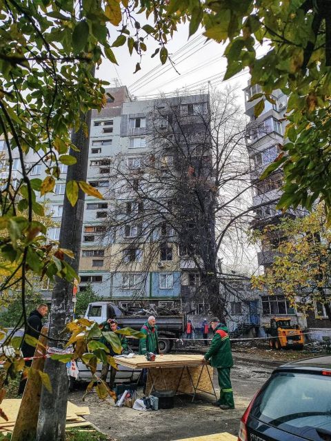 ...У полум’ї балкони на кількох поверхах, вигорілі квартири, пошкоджені дахи, розбиті вікна - це звичний, але завжди нестерпний пейзаж після атаки. Майже 2000 людей залишились без електропостачання, без світла та спокою.