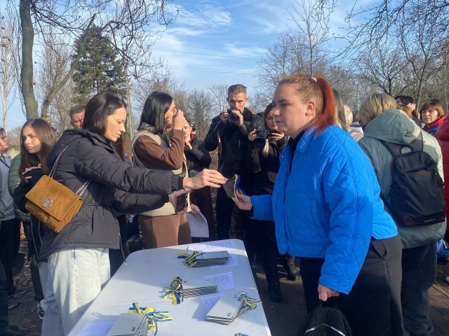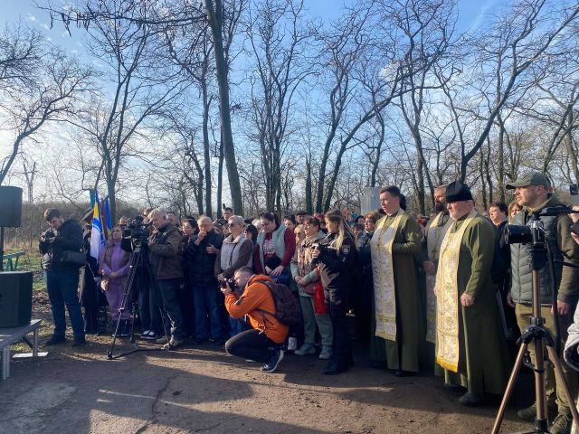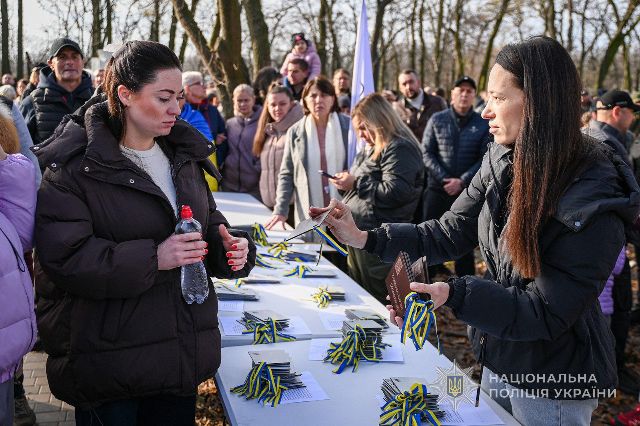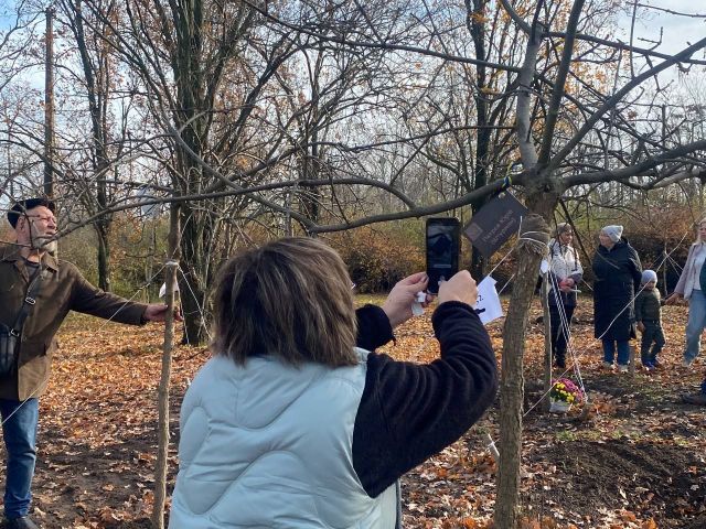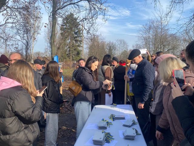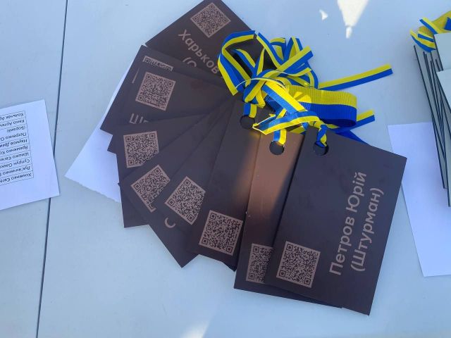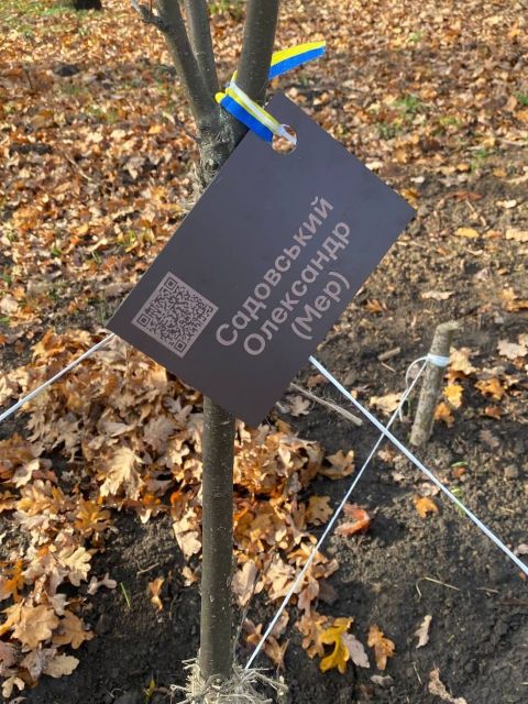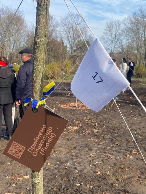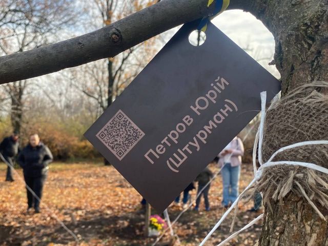 Родинам після закінчення офіційної частини треба було отримати, як розповіла менеджер ГО «Разом ЮА» Ніна Мироненко, табличку з імʼям бійця, його прізвищем, позивним (якщо він, звісно, був) та спеціальним QR-кодом, який веде на сайт «Меморіал честі», де зібрана інформація про загиблого героя, повісити її на дерево та підсипати землю довкола нього