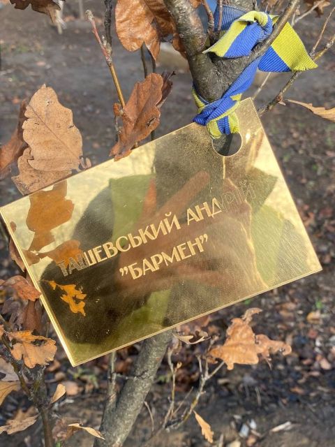 На початку квітня родини полеглих захисників висадили тут перші 95 дерев. Це були дуби.