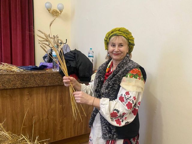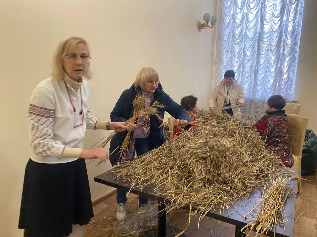 Як проходить процес створення дідуха, приходила дивитися директорка-художня керівниця театру імені Магара Наталія Власова. Дівчата подарували їй гарну мотанку.