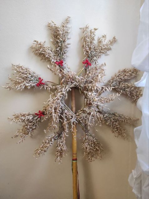 У фоє обласного академічного українського музично-драматичного театру імені В.Г. Магара встановили 3-метровий дідух, який виготовили волонтери та учасниці ГО “Запорозькі берегині”.