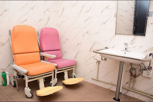 - Наш заклад облаштований згідно з усіма нормами, з дотриманням всіх постанов, норм безбар'єрності. У нас є інклюзивний санвузол, спеціальні крісла, поручні, щоб люди могли комфортно помитися. Раковина та смітники мають сенсорні панелі.