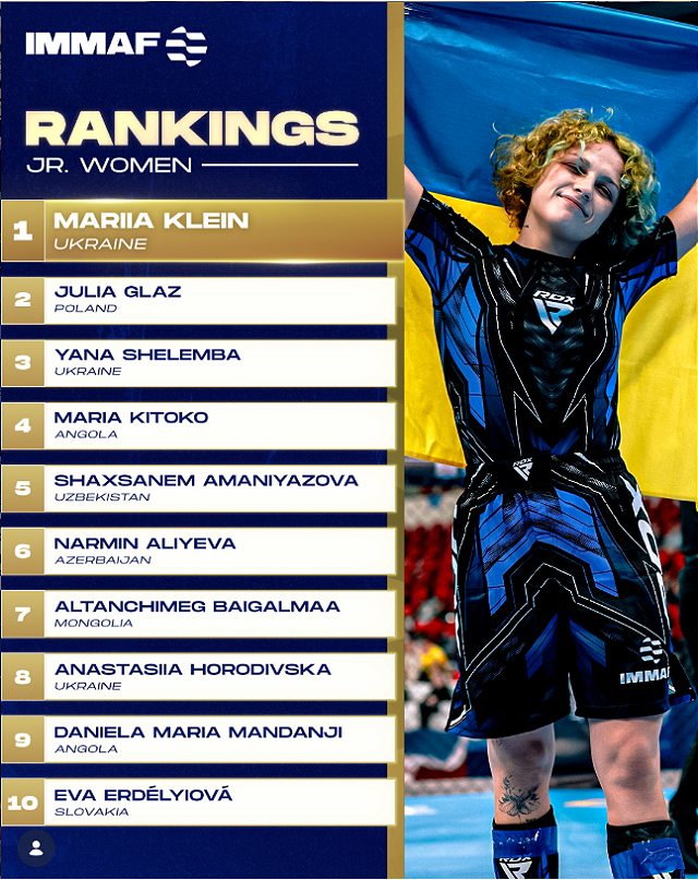 Перше місце в рейтингу IMMAF у юніорському ММА — це не формальність. Це статус фаворитки на чемпіонатах світу, увага скаутів професійних ліг і фактична готовність до переходу на дорослий рівень.