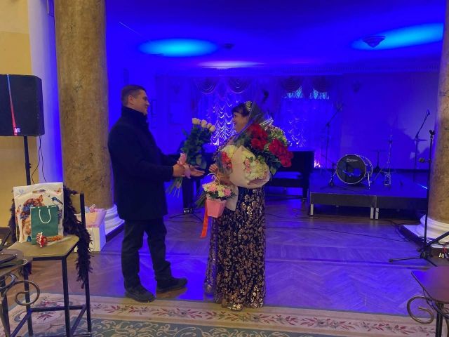 Головну героїню вечора привітала очільниця філармонії, заслужений працівник культури України Ірина Конарева, яка вручила квіти від колективу, побажавши подальших професійних успіхів, творчого натхнення та любові публіки.