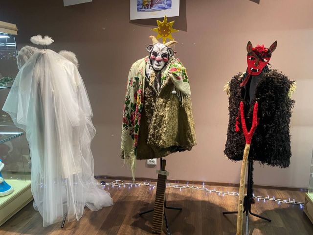 Оскільки виставка присвячена Різдву, то на ній знайшлося місце персонажам, без яких святкове дійство не обходиться — це Коза, Чорт.