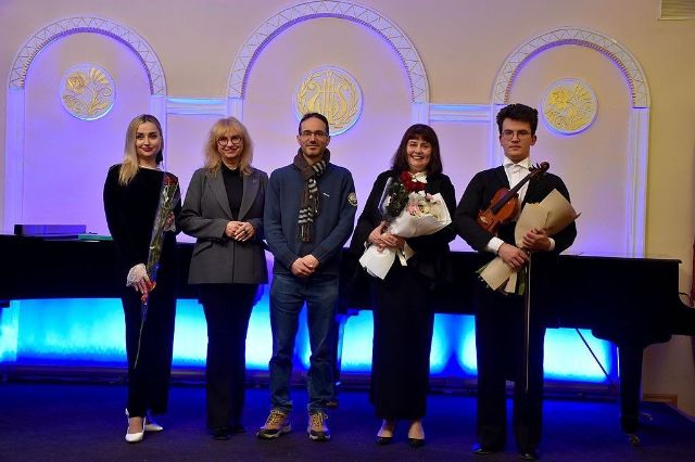 Увесь вечір музичні шедеври дарували артисти філармонії — Світлана Зеленська (фортепіано) та Костянтин Івасенко (скрипка).