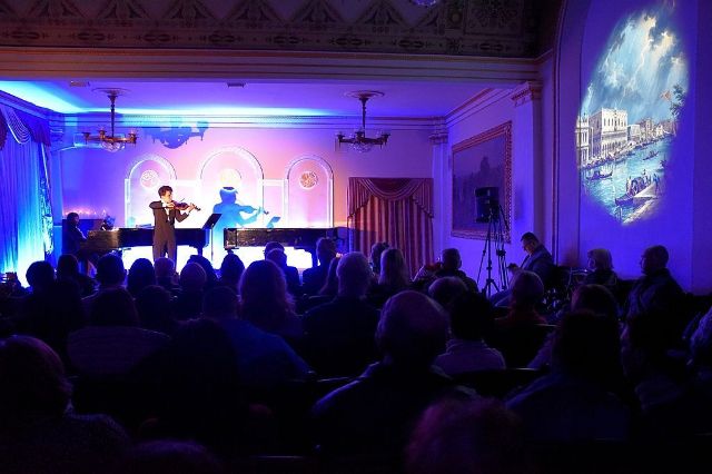 У віртуозному виконанні Світлани Зеленської (фортепіано) і Костянтина Івасенка (скрипка) звучали твори Баха, Бетховена, Моцарта, Сен-Санса, Монті, Шопена, Мирослава Скорика. А ведуча Юлія Дарʼїна розповідала про них цікаві факти.