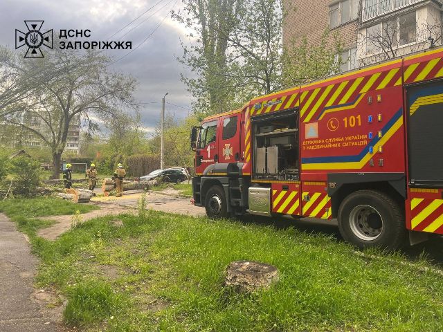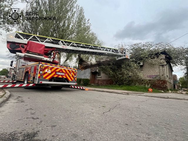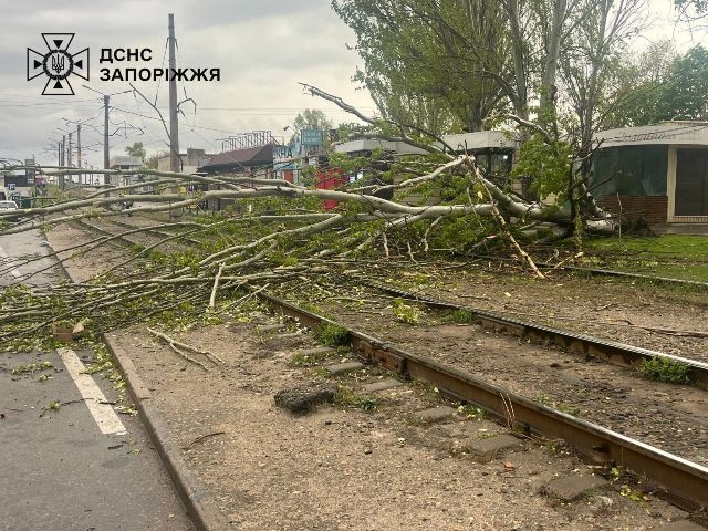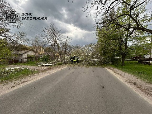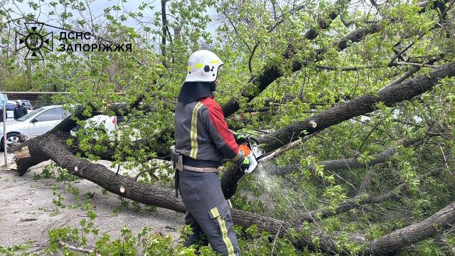 Надзвичайники проводили роботи з розпилювання та прибирання повалених дерев, що перешкоджали руху транспорту і пішоходів. Аварійно-рятувальні роботи тривають», - повідомила пресслужба ГУ ДСНС в Запорізькій області.