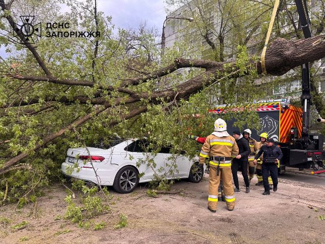 «Унаслідок стихії загинув 39-річний чоловік. Через сильні пориви вітру дерево впало на легковий автомобіль, у якому перебував водій. Рятувальники деблокували тіло загиблого за допомогою спеціального обладнання, розпиляли дерево та прибрали його з проїжджої частини.