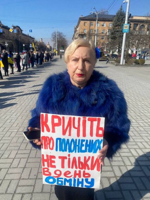 Стелла Орел підкреслює, що запоріжці виходять на акції, щоб підтримати усіх, хто перебуває у ворожому полоні — військових, цивільних.